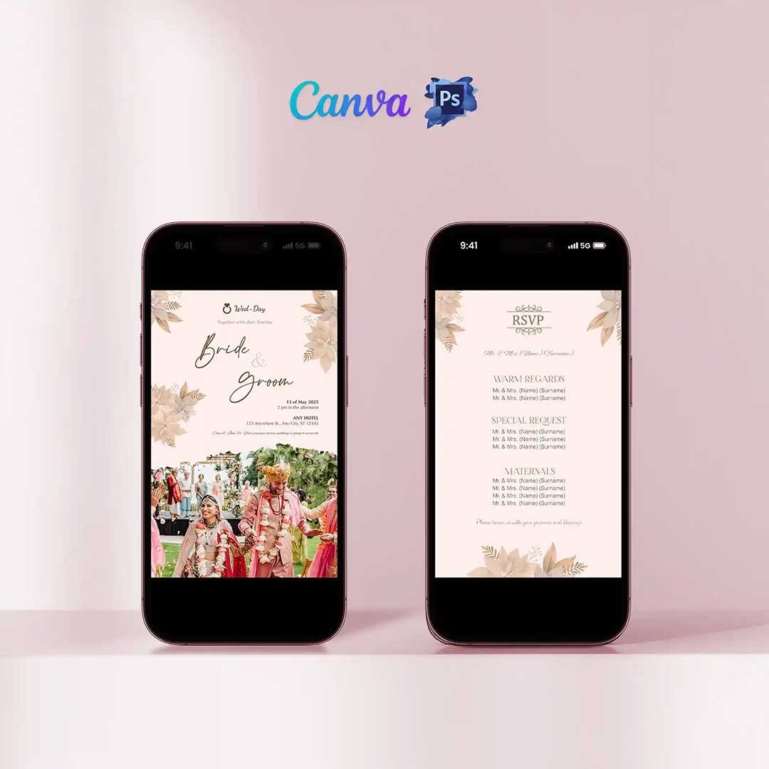 Looking for the Easy Editable Modern Indian Wedding Reception Card? Discover exquisite designs that blend tradition with elegance. Indian wedding card designs for sale, perfect for adding a traditional touch to your special day. All cards are easy to edit and fully customizable, allowing you to add a personal touch to make your invitation truly unique.
